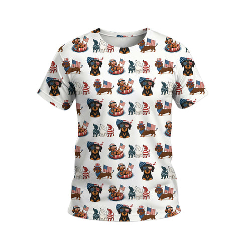 American Flag and Cute Dachshund Pattern Polo, Dachshund Shirt, Wiener Dog T Shirt